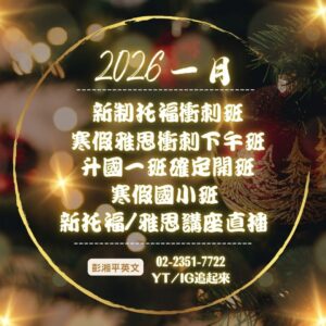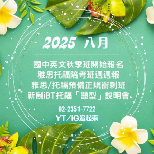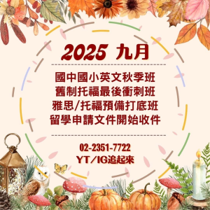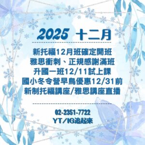教室公告 🎉2026一月課程速報🎉 2026 年 1 月 6 日 閱讀更多 » 🎄2025十二月課程速報🎄 2025 年 12 月 3 日 閱讀更多 » ☃️兒童寒假英文營☃️ 2025 年 11 月 24 日 閱讀更多 » 🍂2025十一月課程速報🍂 2025 年 11 月 11 日 閱讀更多 » °❀⋆.ೃ࿔*舊制VS.新制 該考哪個托福°❀⋆.ೃ࿔* 2025 年 11 月 11 日 閱讀更多 » .•*¨*•2025九月課程速報.•*¨*• 2025 年 9 月 8 日 閱讀更多 » °・.。*・.。*英文學習歷程,歡迎大家一起來分享°・.。*・.。* 2025 年 8 月 21 日 閱讀更多 » °❀⋆.ೃ࿔*:・2025八月課程速報°❀⋆.ೃ࿔*:・ 2025 年 8 月 7 日 閱讀更多 » 。*:..。托福實體新開班。*:..。 2025 年 8 月 7 日 閱讀更多 » « 頁面1 頁面2 頁面3 頁面4 頁面5 頁面6 頁面7 頁面8 頁面9 頁面10 頁面11 頁面12 頁面13 »